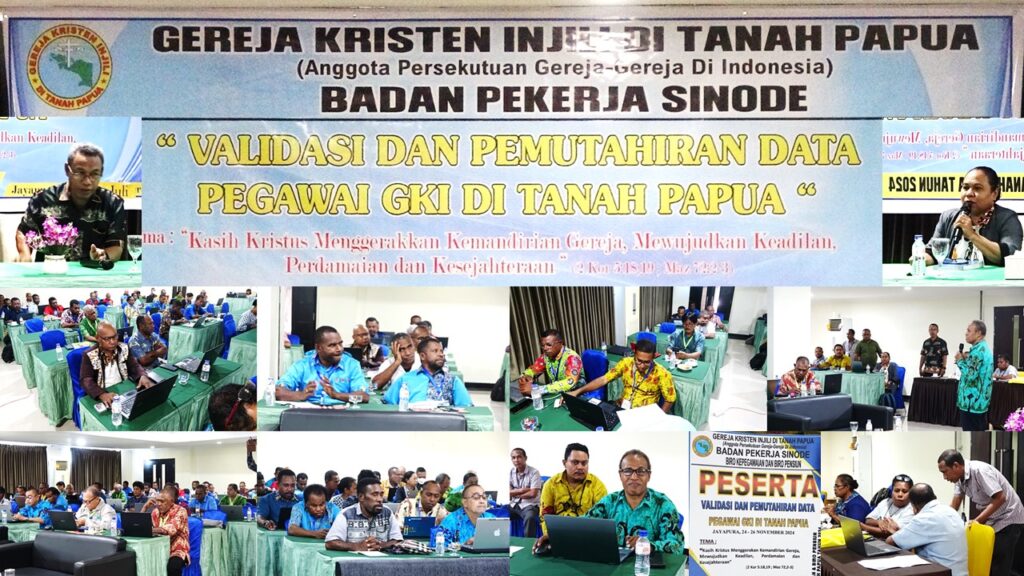 Jayapura, 26 Juli 2024 – Gereja Kristen Injili di Tanah Papua (GKITP) menggelar kegiatan validasi dan pemutakhiran data pegawai selama tiga hari, mulai tanggal 24 hingga 26 Juli 2024, bertempat di Hotel Grant Talent Kotaraja Jayapura. Kegiatan ini bertujuan untuk memastikan keakuratan data pegawai dan mendukung pengelolaan keuangan gereja yang lebih efektif.