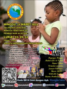 Kita sudah mencapai hari ini adalah hari ke-84, minggu ke-12 adalah minggu ke-4 dalam bulan ke-3 Maret tahun 2024 adalah minggu sengsara ke-7. Dalam minggu ke-4 bulan Maret, kita diarahkan kepada tema “pemberdayaan” dengan fokus triwulan 1 (satu) adalah: “TUHAN Sumber Utama Pemberdayaan”. Firman Tuhan yang mendatangi kita untuk merefleksikan makna pemberdayaan dan juga menggumuli semua karya kita sepanjang minggu ini, minggu sengsara ke-7 dari Lukas 22:39-53.